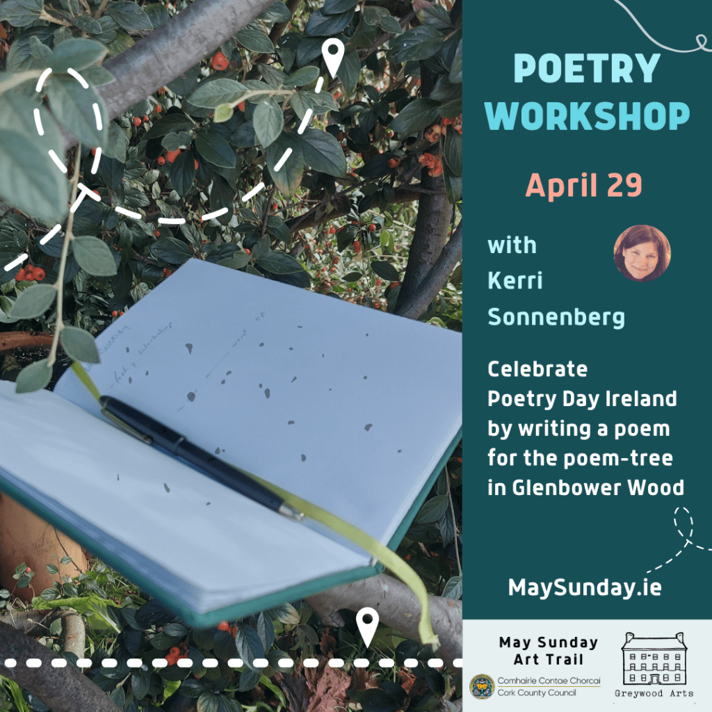 Finished works will be installed at a dedicated Poem-tree as part of the May Sunday Art Trail in Glenbower Wood, Killeagh East Cork, May 1-9.